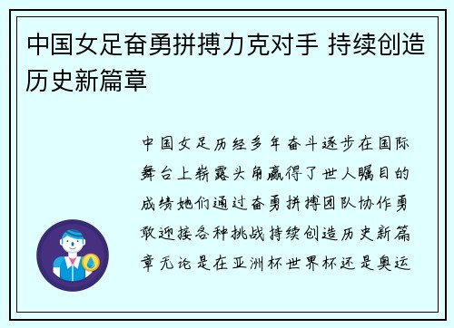 中国女足历经多年奋斗,逐步在国际舞台上崭...