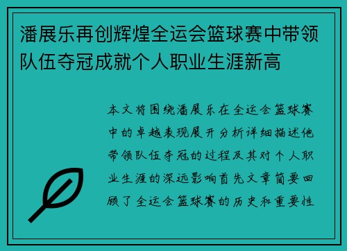 本文将围绕潘展乐在全运会篮球赛中的卓越表...