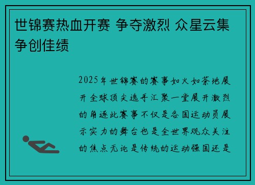 2025年,世锦赛的赛事如火如荼地展开,...