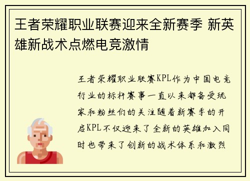 《王者荣耀》职业联赛(KPL)作为中国电...