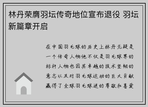 在中国羽毛球的历史上,林丹无疑是一个传奇...