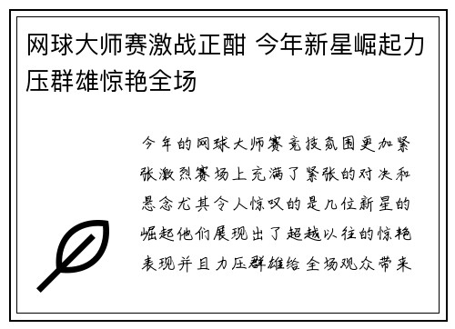 今年的网球大师赛,竞技氛围更加紧张激烈,...