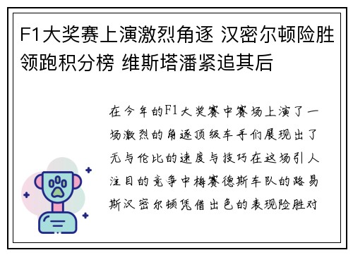 在今年的F1大奖赛中,赛场上演了一场激烈...