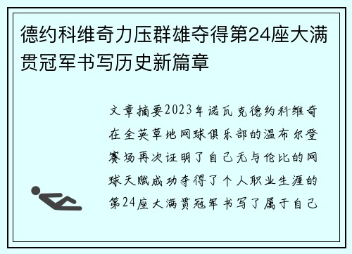 文章摘要:2023年,诺瓦克·德约科维奇...
