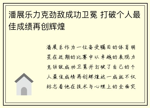 潘展乐,作为一位备受瞩目的体育明星,在近...