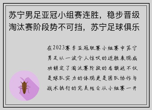 在2023赛季亚冠联赛小组赛中,苏宁男足...