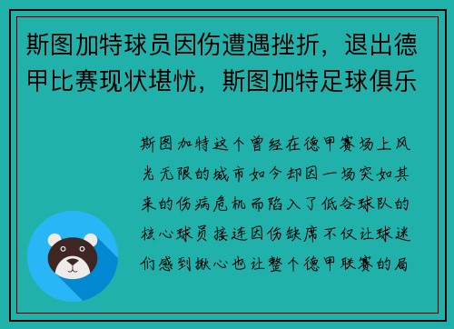 斯图加特,这个曾经在德甲赛场上风光无限的...