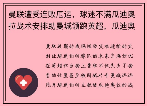 曼联近期的表现堪称灾难,连续的失利让球迷...