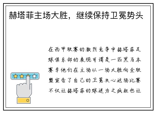 在西甲联赛的激烈竞争中,赫塔菲足球俱乐部...