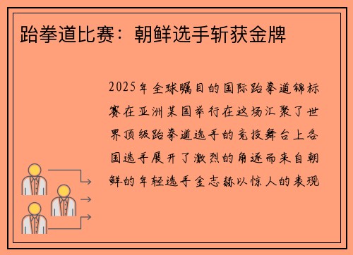 2025年,全球瞩目的国际跆拳道锦标赛在...
