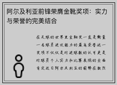 在足球的世界里,金靴奖一直是衡量一名球员...
